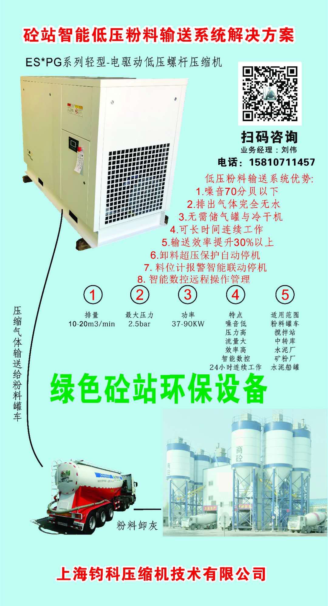 5、上海钧科螺杆空压机是完全针对搅拌站研发的建材专用低压螺杆空压机,超大油分系统,超大冷却系统,无易损件,更耐用,更适合于搅拌站的特殊工况和环境。