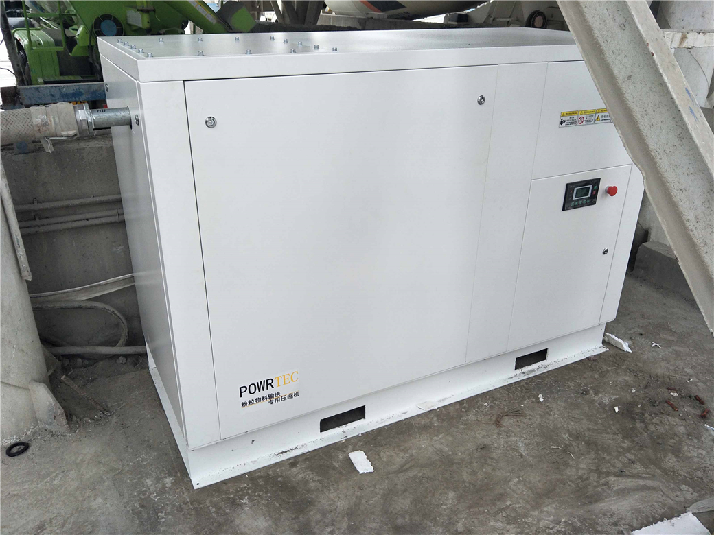本系统方案为2条生产线低配备2台空压机,可以2台粉料运输罐车卸料,选型选配是37千瓦直联变频12立方压缩机此款压缩机是高配置压缩机后期维护故障率低,变频器的选配因启动电流小不会电流过大可能造成搅拌主机停机,也不会因为负荷过大造成电机与电器元件的损坏,搅拌站的电压不稳定使用变频器的配置也更加的合适,不会因为电压过高或过低造成机器无法启动,本型号机器是37千瓦排气量12立方打料速度快效率高(35m³-85m³粉料运输罐车都可使用),加上变频器的选配会更加省电,直联的也不会因为使用时间过长打气慢,效率变低,单台机器单台车打料时间快效率高。